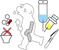 軽症では入院の必要はありません。出血が多かったり潰瘍が広く深いときには、入院して大腸の安静を目的に絶食にする場合もあります。ただし、ほとんどは積極的治療を必要とせず、腸の安静を保てば1−2週間で自然に治ります(図7